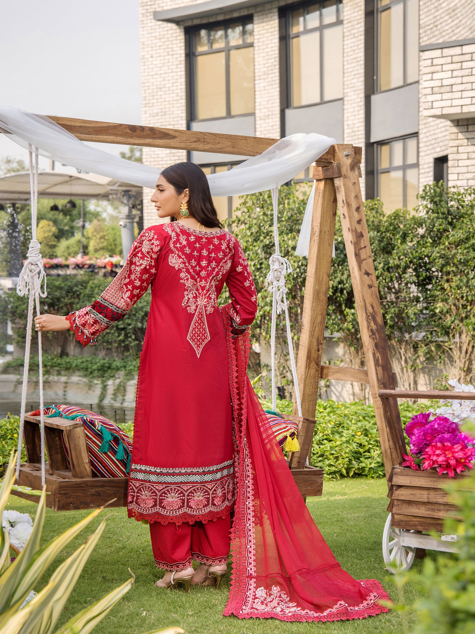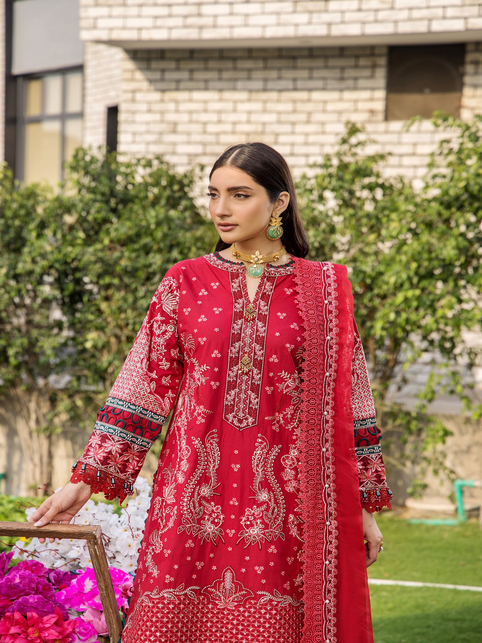 Enhanced with two embroidered necklines and multiple embroidered damans, borders & laces for a richly detailed finish