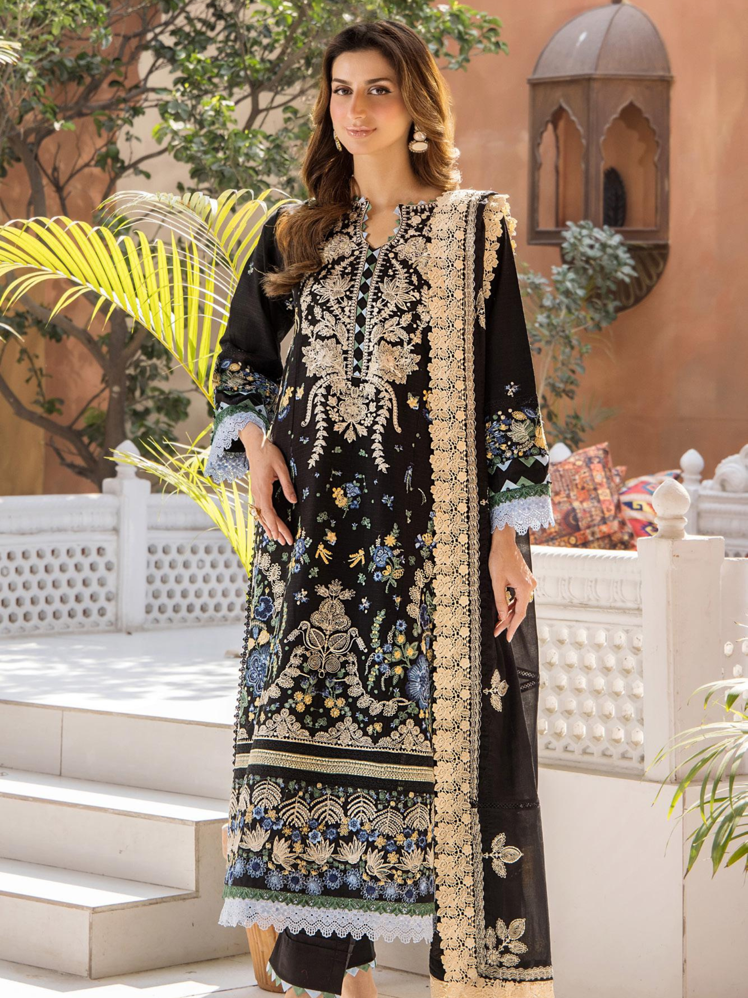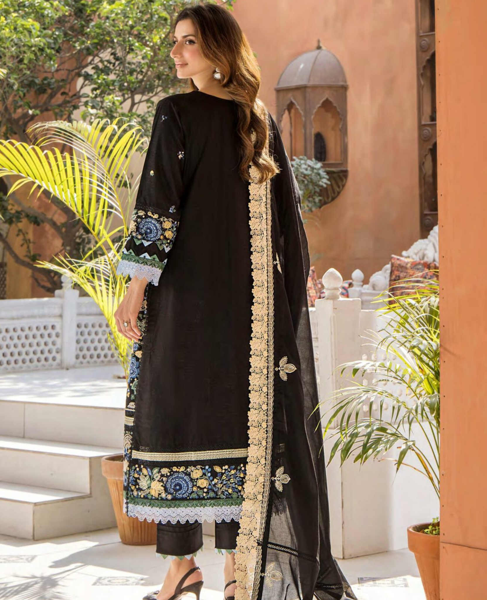 TEXTURED LAWN EMBROIDERED SHIRT SLEEVES