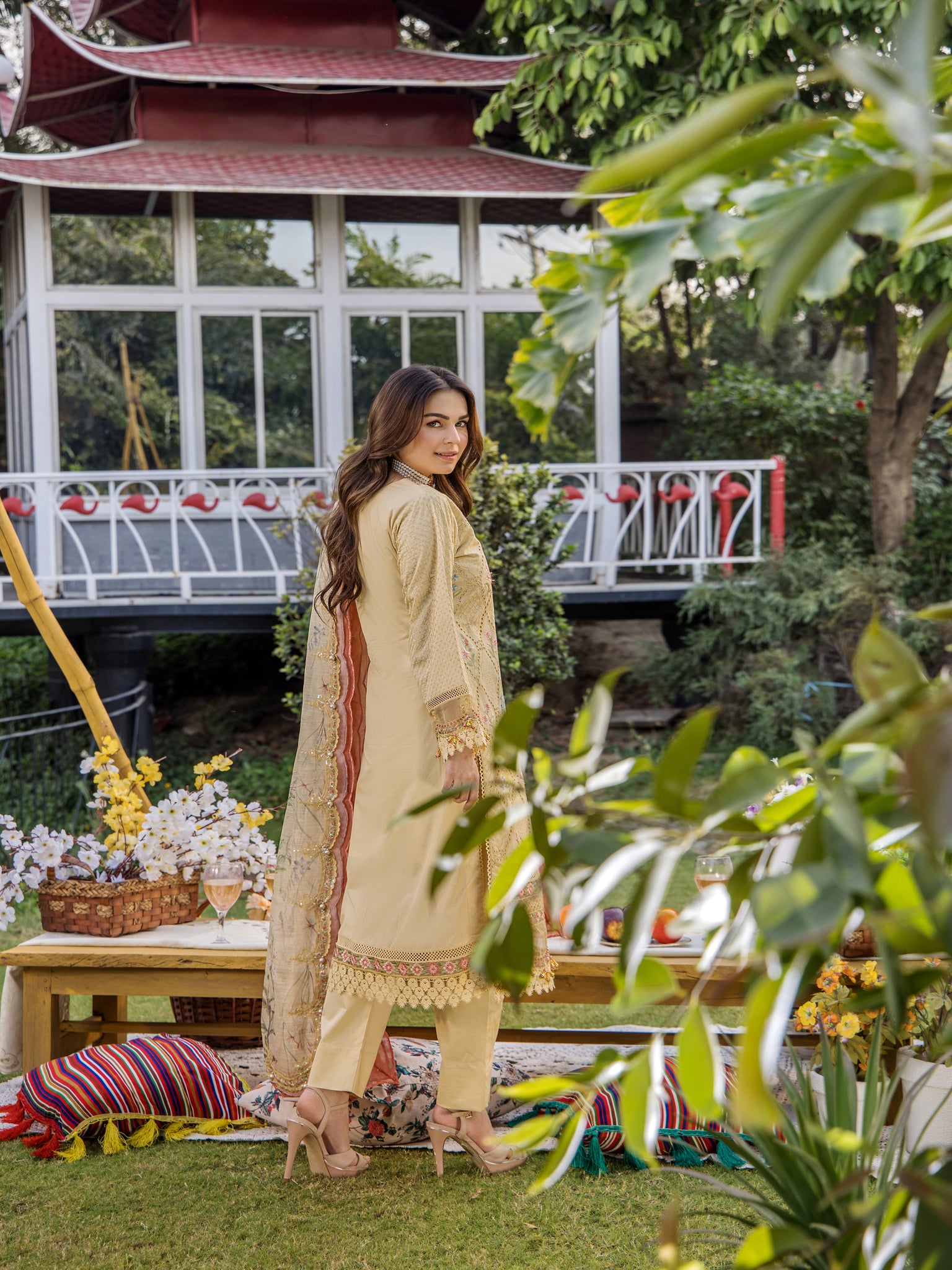Beautiful embroidered lawn shirt front & sleeves with dyed back